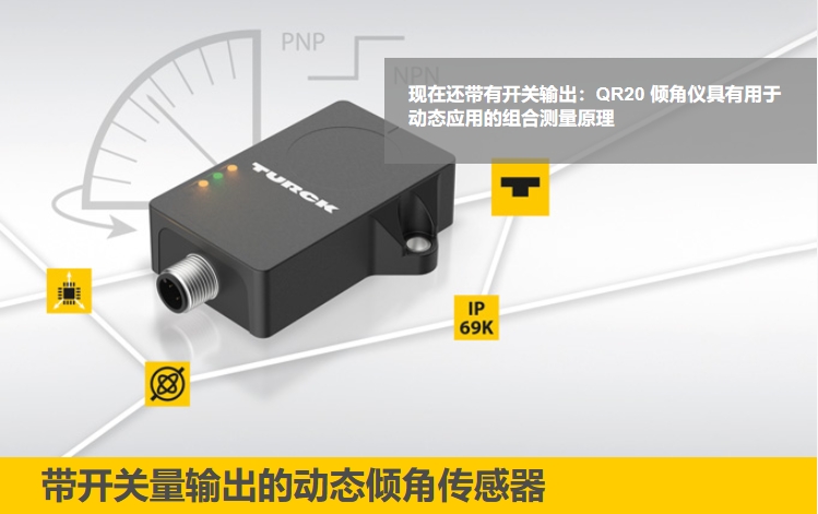 現(xiàn)在還帶有開關輸出:QR20 傾角儀具有用于動態(tài)應用的組合測量原理